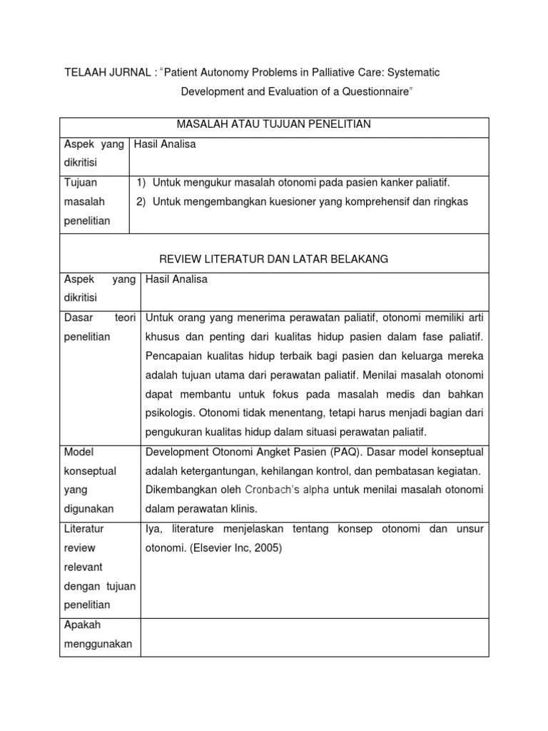 Ni wayan wiwin astiningsih s.kep (stase. Itulah beberapa rekomendasi contoh telaah jurnal keperawatan keluarga yang tersedia di situs inijurnal.com. Hasil studi literature efek program manajemen diri pada pasien ppok dibeberapa negara penulis/ negara populasi jenis peneltian tujuan penelitan metode dan intervensi instrument hasil (wetering et al.,2010) belanda jumlah pasien 199 orang. Kelompok sampel terdiri dari 30 pasien rawat inap dari bulan maret sampai september 2005 di dua unit perawata… 200 women were recruited at booking, 14 women and 20 partners after an invasive test and 81 women.