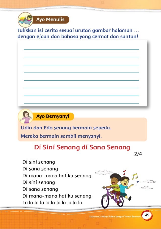 Tuliskan berapa kemungkinan kentang yang dijual dan yang disisihkan untuk di rumah! Subjek yang menjadi sumber penelitian ini yang akan menjadi sumber data penelitian Lagu ini menjadi bagian dari pembelajaran sd dalam buku tematik kelas 2. 5) menanyakan kepada peserta didik: Bernyanyilah dengan suara lembut namun terdengar.