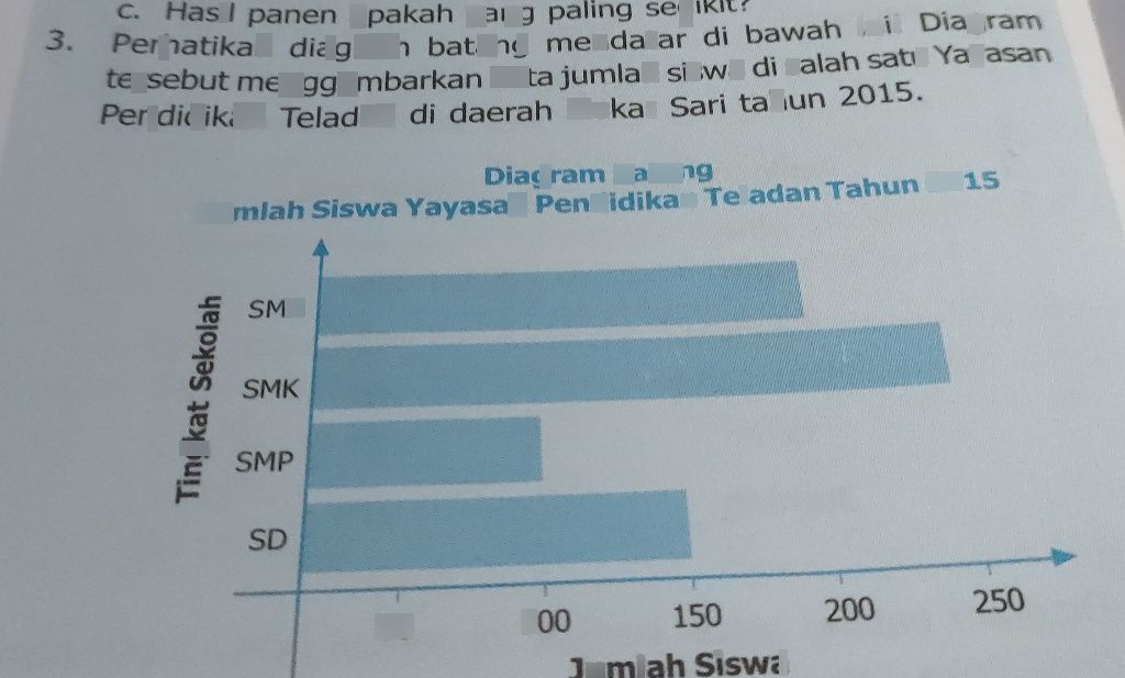 Jumlah (dalam ton) 300 200 100. Selisih padi tahun 2005 dan tahun 2009 adalah. Hasil panen di desa soka tahun 2015 600 500 400. 2 diagram batang tegak berikut ini tentang data hasil panen di desa soka tahun 2015 diagram batang hasil panen di dc soka tahun 2015 60 50 (datolam n) 400 . Kacang tanah kacang jagung kedelai hasil panen Data di bawah menunjukkan penduduk usia kerja di desa galuh. Berapa ton seluruh hasil panen di desa soka tahun 2015?b. Perhatikan diagram batang mendatar di bawah ini! Jika dari tahun 2012 ketahun 2013 hasil panen mangga naik 150 ton,. Di suatu daerah pertanian jagung yang terdiri atas 10 kelompok area pertanian, pada suatu musim panen, hasilnya tercatat sebagai berikut (dalam kwintal). Penurunan hasil panen terjadi pada tahun ? Jumlah (dalam ton) 300 200 100. Kacang tanah kacang jagung kedelai hasil .
